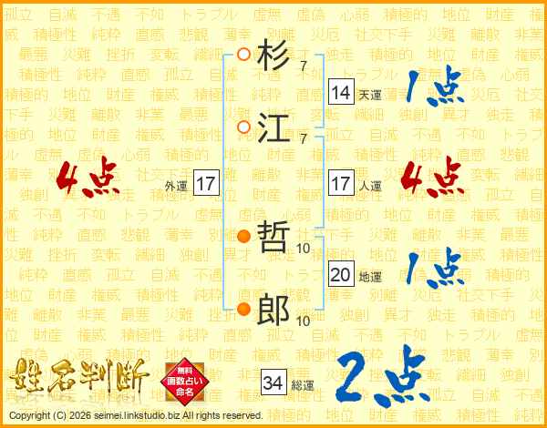 杉(7画)江(7画) 哲(10画)郎(10画)