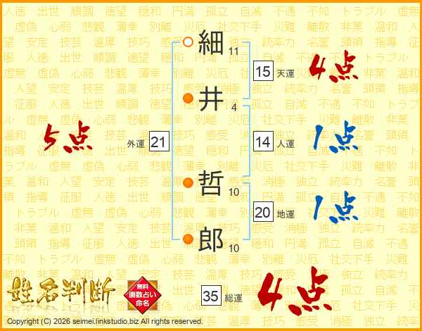 細井哲郎さんの総運は35画の4点!