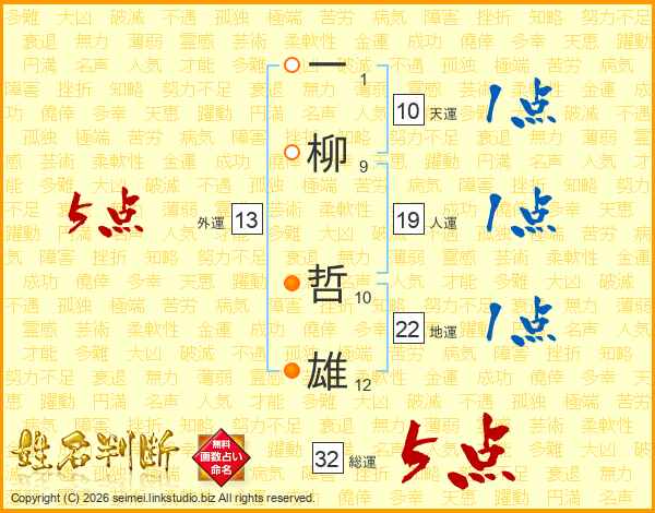 一(1画)柳(9画) 哲(10画)雄(12画)