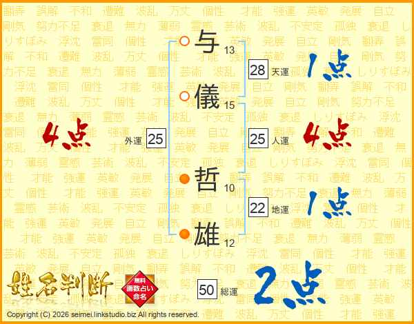 与儀哲雄さんの人運は25画の4点!