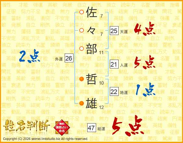 佐々部哲雄さんの総運は47画の5点!