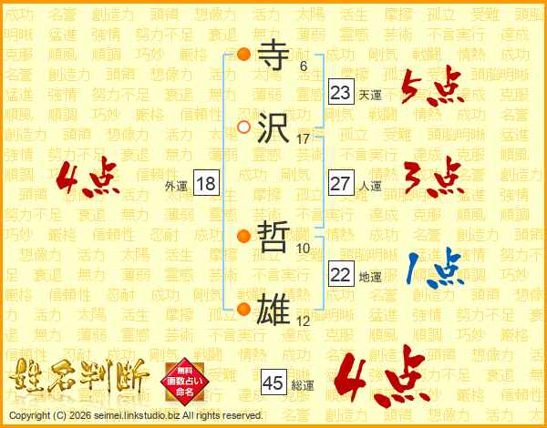 寺(6画)沢(17画) 哲(10画)雄(12画)