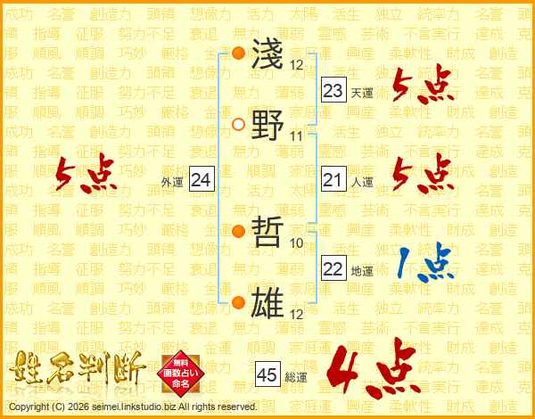 淺野哲雄さんの天運は23画の5点!