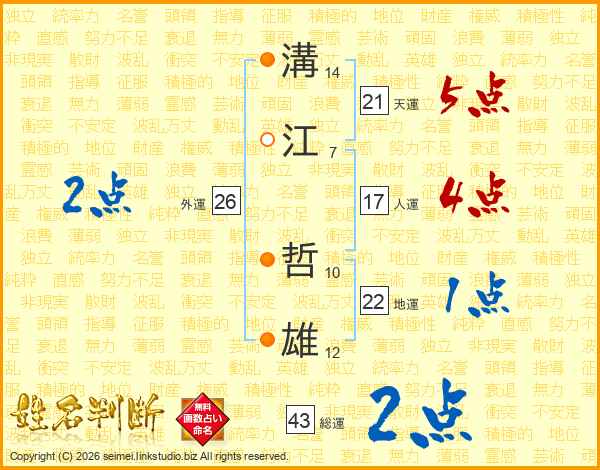 溝江哲雄さんの天運は21画の5点!