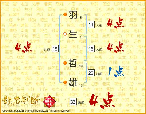 羽生哲雄さんの総運は33画の4点!