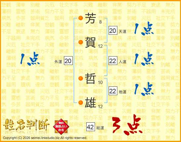 芳賀哲雄さんの人運は22画の1点!