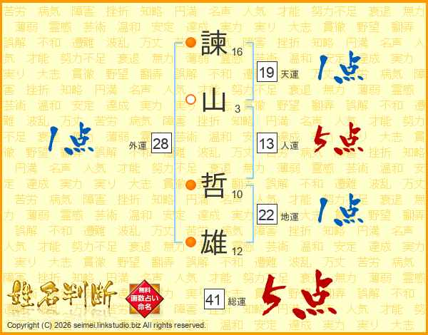 諫山哲雄さんの総運は41画の5点!