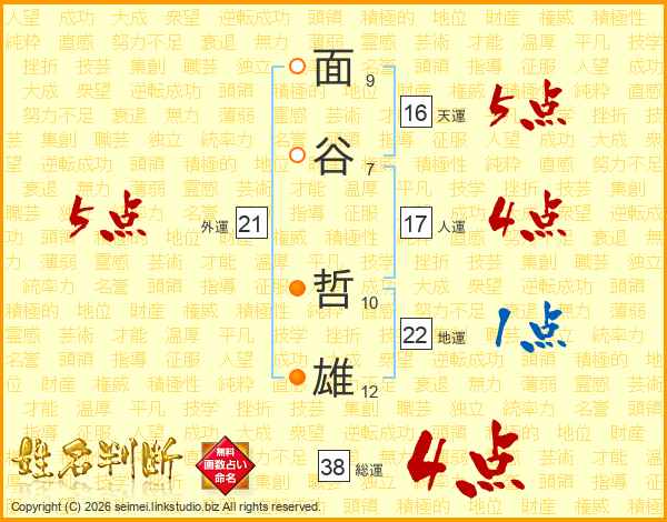 面谷哲雄さんの総運は38画の4点!