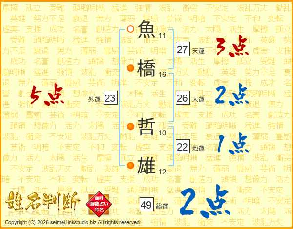 魚橋哲雄さんの総運は49画の2点!