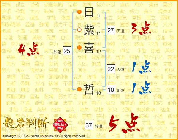 日紫喜哲さんの総運は37画の5点!