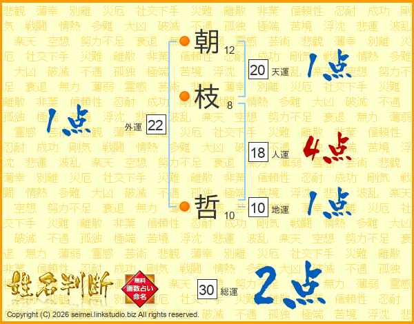 朝枝哲さんの総運は30画の2点!