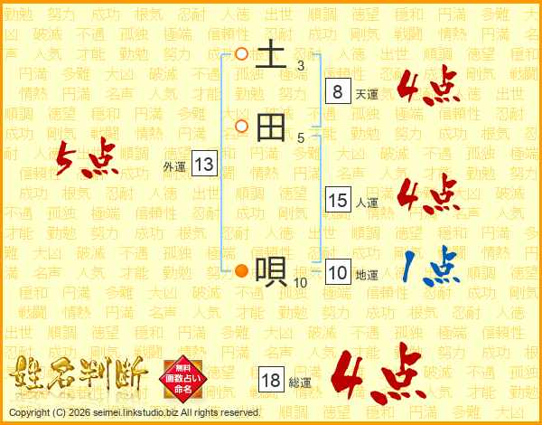 土田唄さんの総運は18画の4点!