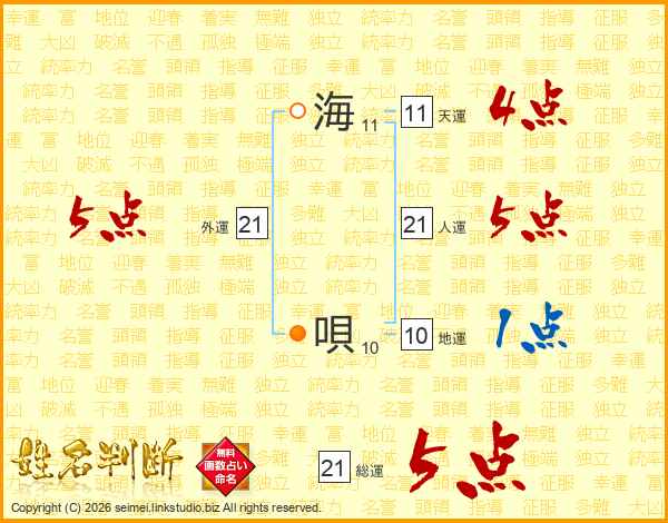 海唄さんの総運は21画の5点!