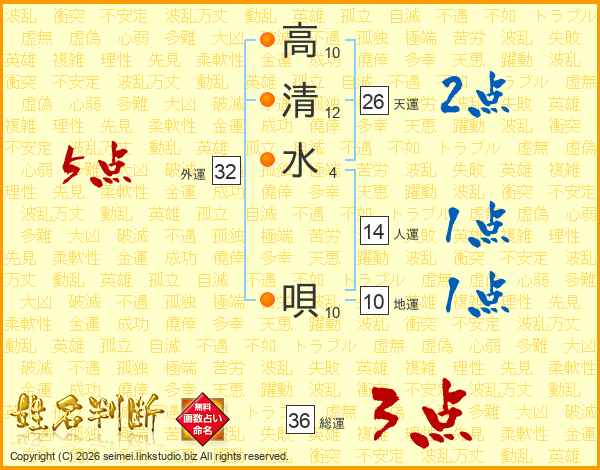 高清水唄さんの天運は26画の2点!