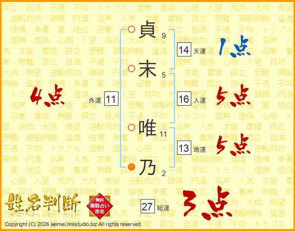 貞(9画)末(5画) 唯(11画)乃(2画)