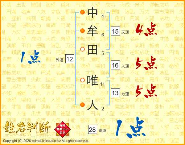 中牟田唯人さんの総運は28画の1点!