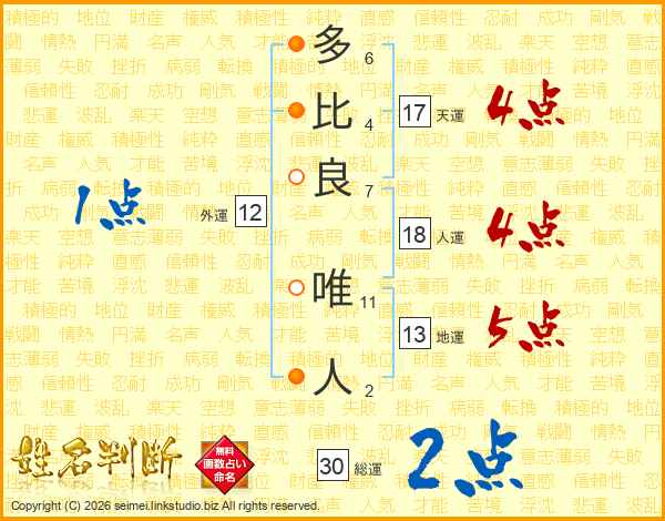 多比良唯人さんの総運は30画の2点!