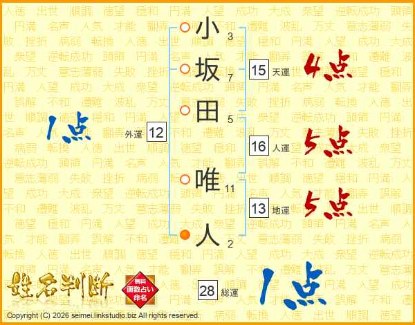 小坂田唯人さんの総運は28画の1点!