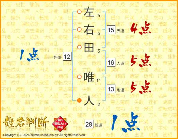 左右田唯人さんの総運は28画の1点!