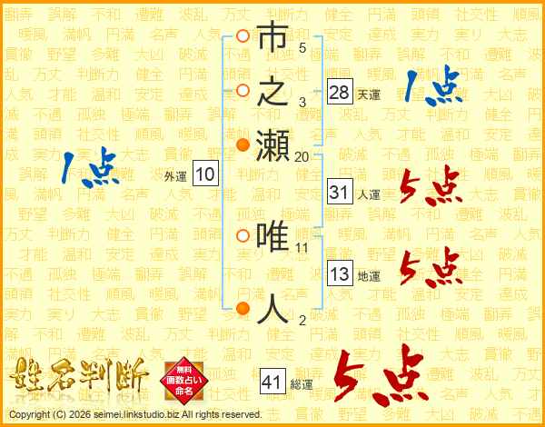 市之瀬唯人さんの人運は31画の5点!