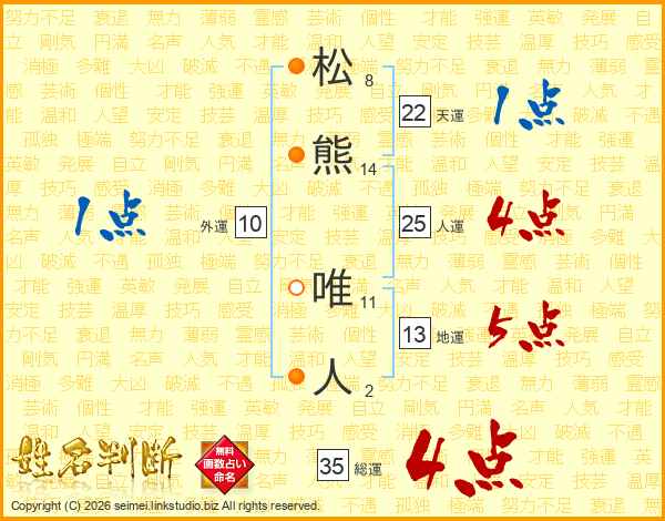 松熊唯人さんの総運は35画の4点!