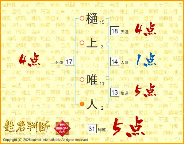 樋上唯人さんの総運は31画の5点!