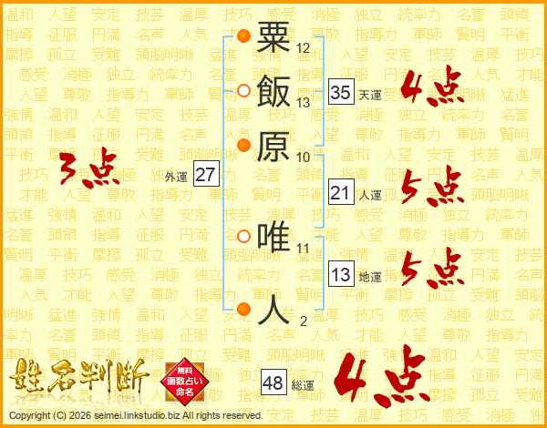 粟飯原唯人さんの総運は48画の4点!