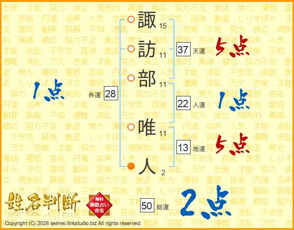 諏訪部唯人さんの総運は50画の2点!
