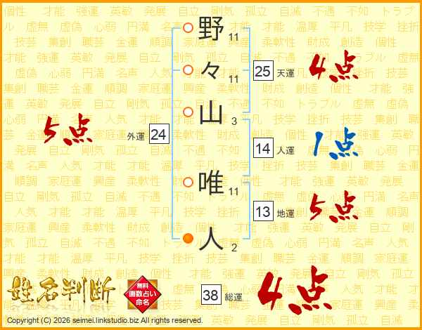 野々山唯人さんの総運は38画の4点!