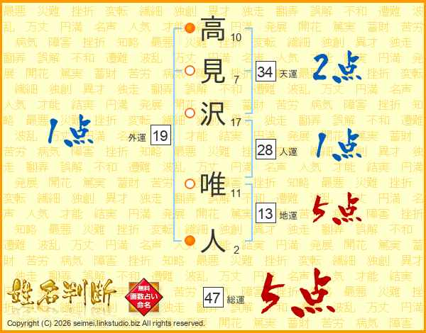高見沢唯人さんの総運は47画の5点!