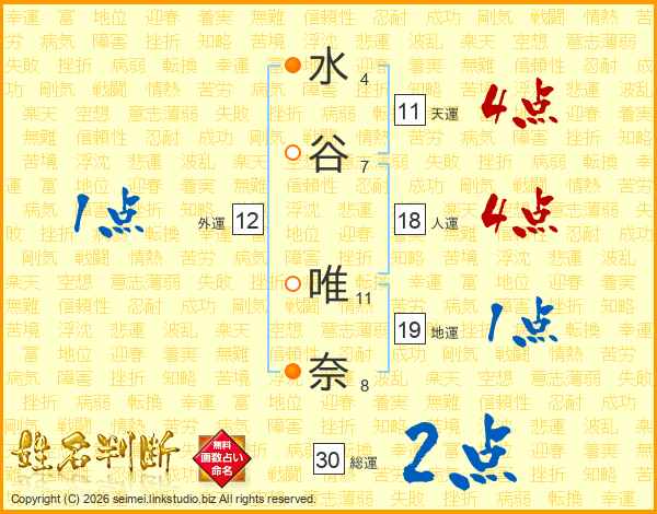 水谷唯奈さんの天運は11画の4点!
