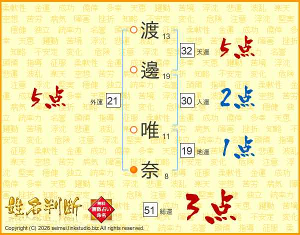 渡邊唯奈さんの天運は32画の5点!