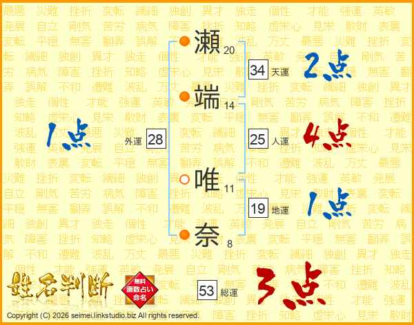 瀬端唯奈さんの総運は53画の3点!