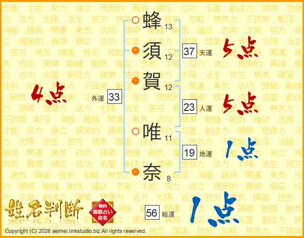 蜂須賀唯奈さんの総運は56画の1点!