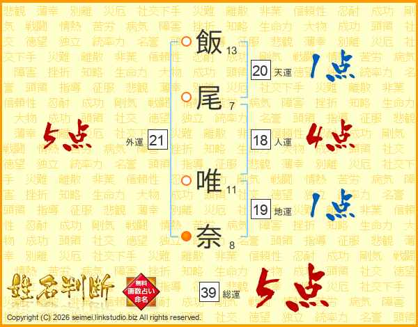 飯尾唯奈さんの総運は39画の5点!