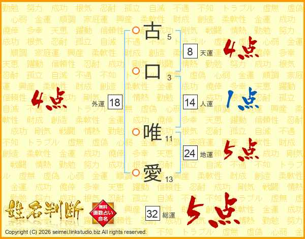 古口唯愛さんの総運は32画の5点!