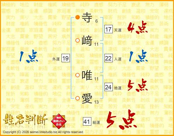 寺﨑唯愛さんの天運は17画の4点!