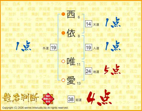 西依唯愛さんの総運は38画の4点!