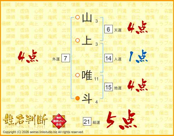 山上唯斗さんの総運は21画の5点!