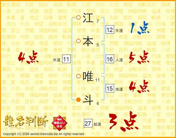 江本唯斗さんの総運は27画の3点!