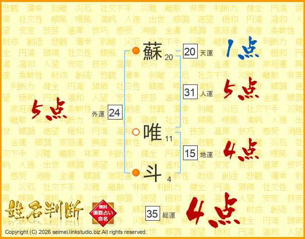 蘇唯斗さんの総運は35画の4点!