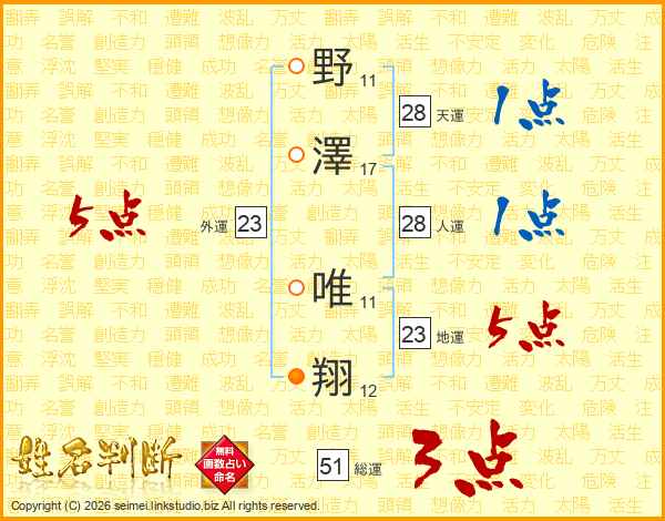 野澤唯翔さんの総運は51画の3点!
