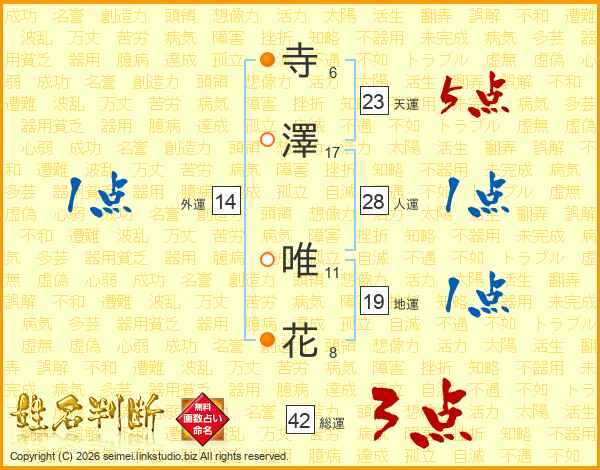 寺澤唯花さんの天運は23画の5点!
