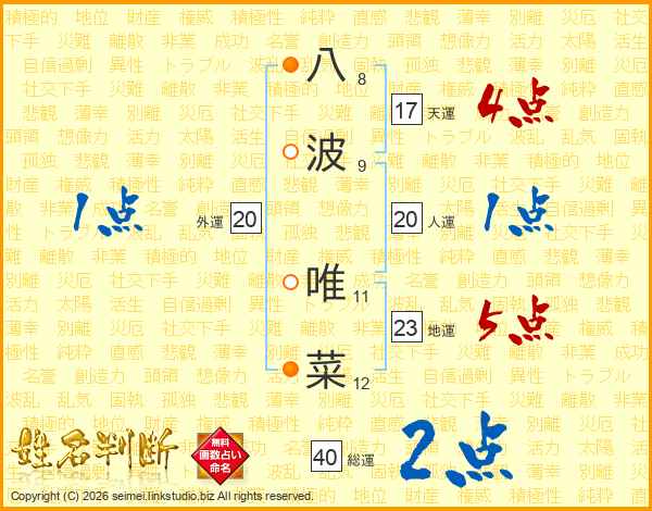八波唯菜さんの総運は40画の2点!
