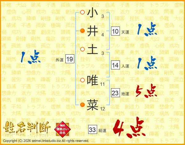 小井土唯菜さんの総運は33画の4点!