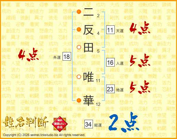 二反田唯華さんの地運は23画の5点!
