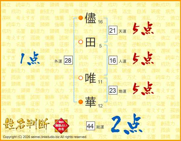 儘田唯華さんの天運は21画の5点!