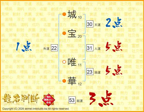 城宝唯華さんの総運は53画の3点!