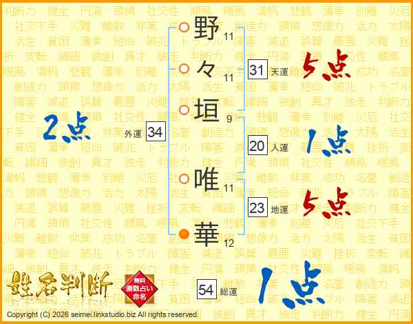 野々垣唯華さんの天運は31画の5点!