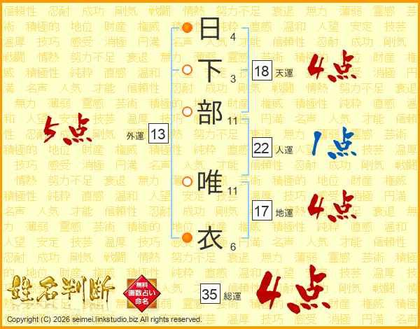 日下部唯衣さんの天運は18画の4点!